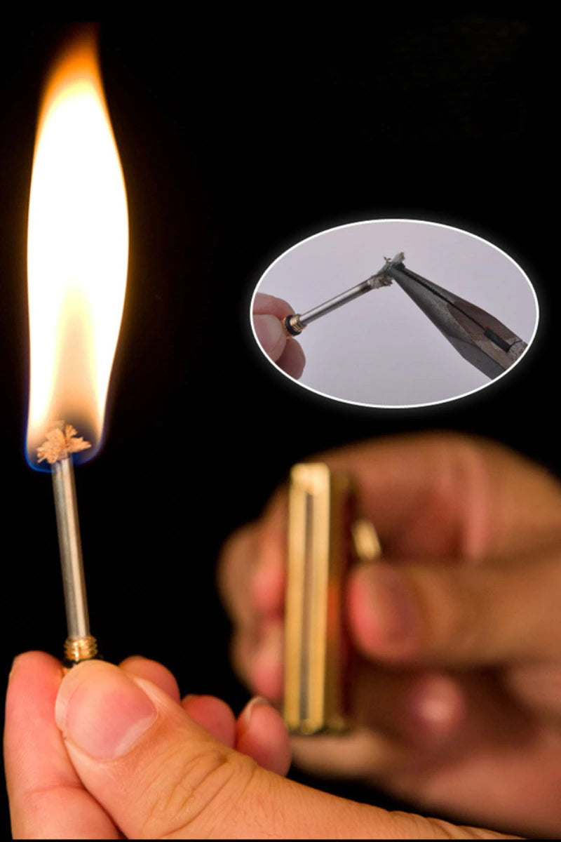 This keychain features a sleek design with a metal match that can produce a flame instantly, making it convenient for lighting candles, stoves, or campfires.