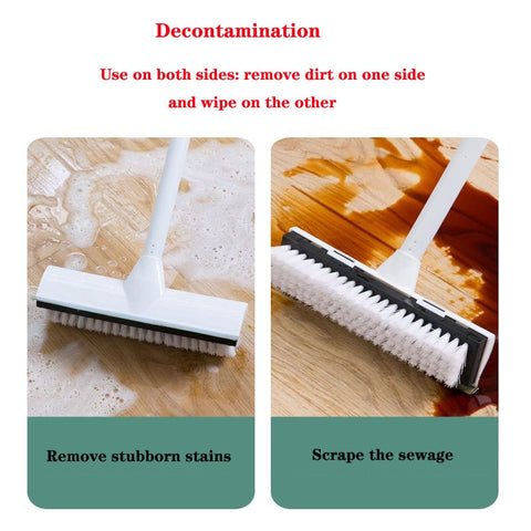 Easy & Save Effort Brush + scraper 2 in 1 design floor scrub brush with stiff bristle + rubber squeegee; Strong cleaning ability; Brush + scrape steps to easily remove the stain, stubborn grime, dirty water, and dust; Improve effectiveness when you doing housework.