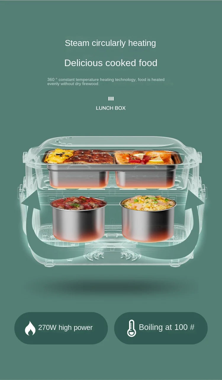 - This 3-layer lunchbox is designed for portability and freshness preservation.