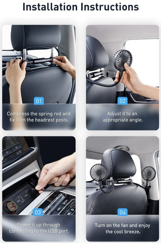 - Spring-mounted: The fan with spring can be installed according to the distance between headrest poles and can face forward or backward.