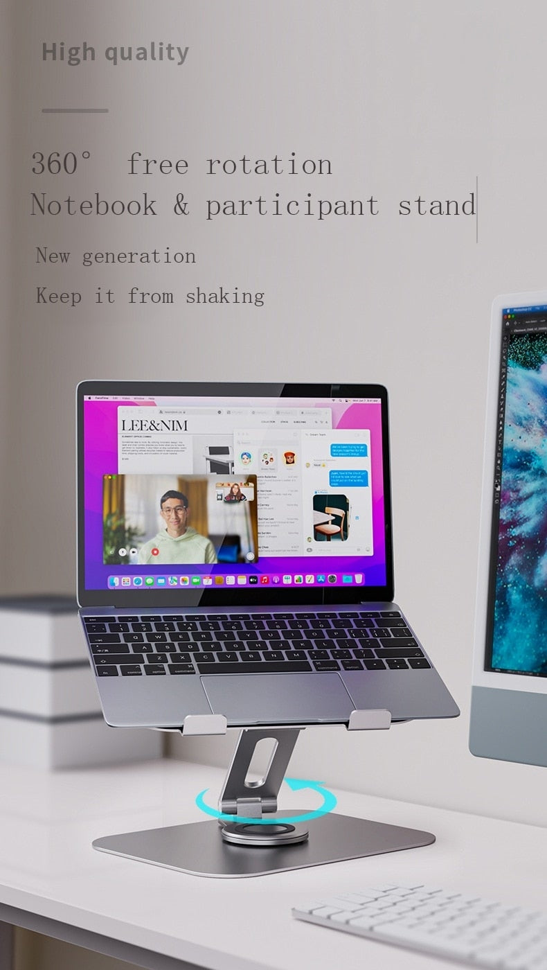 Stable & Protective: The Rotating Laptop Stand is made of thickened aluminum alloy, has a smooth edge that protects you from being scratched. Provides highly firm and durable silicone pads to ensure a tight connection with the desk and hold your laptop stable in place, no worry about wobbling and slipping.
