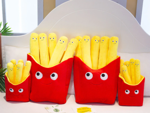 - This 3D Burger Fries Plush Toy Pillow will make you crave some delicious crispy fried potatoes with ketchup and salt on top! It comes with five fries pillow.