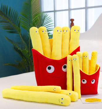 - This 3D Burger Fries Plush Toy Pillow will make you crave some delicious crispy fried potatoes with ketchup and salt on top! It comes with five fries pillow.