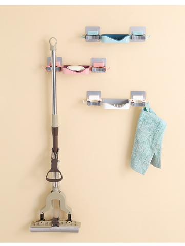 The 3in1 Soap Mop Rack Holder is a cost-effective and durable solution for tiding up your bathroom. It allows the storage of three different cleaning products in one place. In addition to this, the 3in1 Soap Mop Rack Holder features a removable soap dish and a hook for hanging towels.
