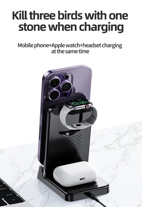 Tangled wires and multiple chargers can clutter up any workspace. Enter the foldable, multi-functional wireless charging dock that ensures swift charging while keeping your space sleek and organized. This stylish yet efficient solution is the perfect companion for tech enthusiasts looking for a more streamlined charging experience.?