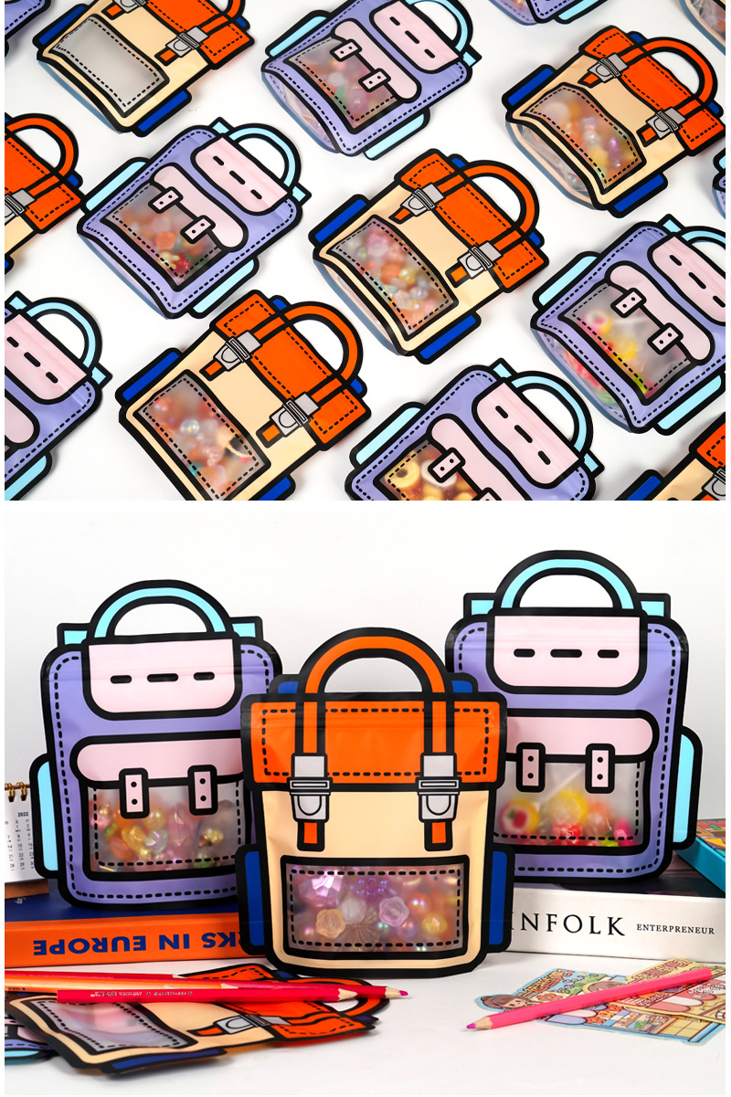 Dive into a world of whimsy and wonder with this collection of 2D cartoon schoolbags. Designed to stand out and create a visual illusion, these bags are sure to be a conversation starter wherever you go.?