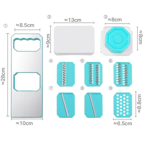 - It has 6 different knives for vegetables and fruits such as onion, mushroom, cucumber, carrot, potato, tomato, ginger, Garlic, etc.