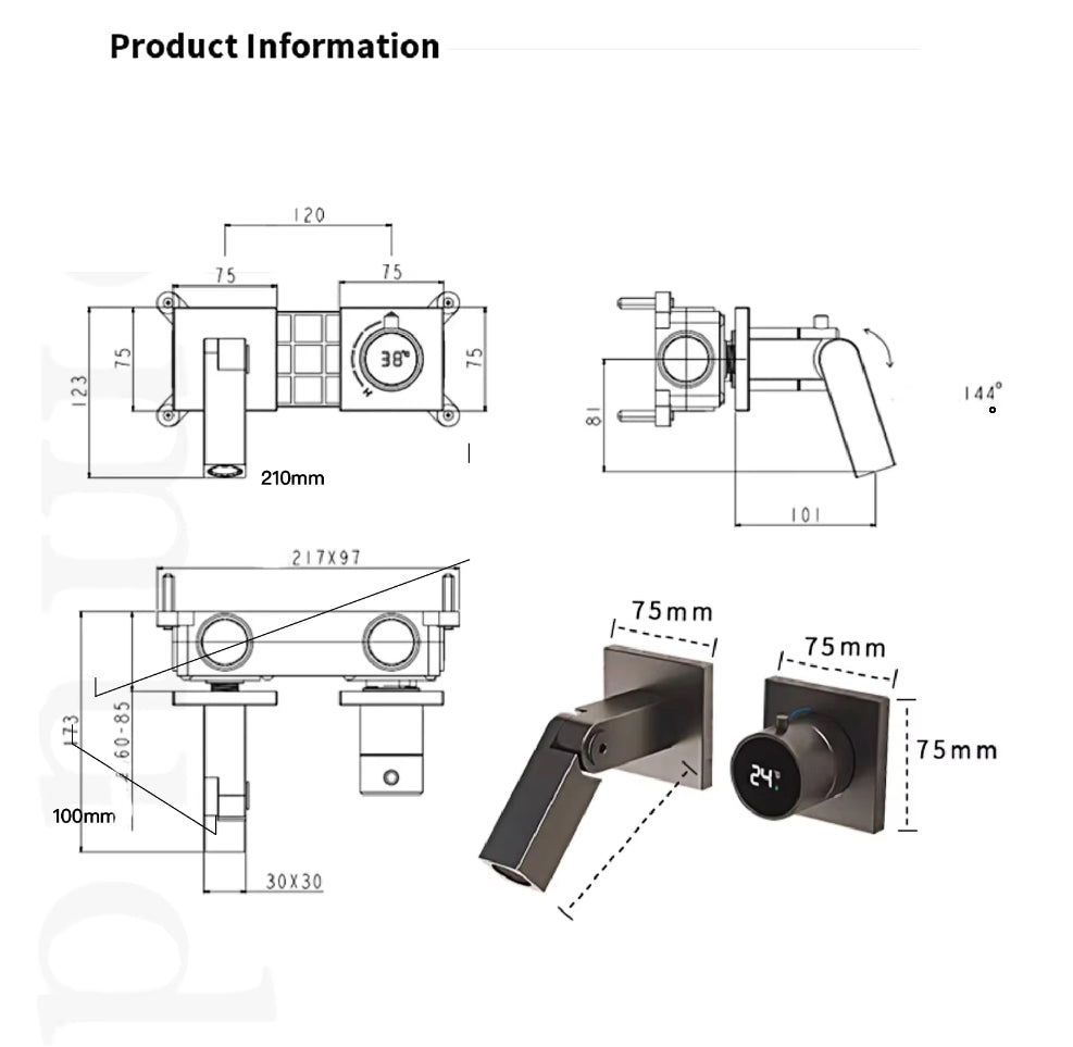 Upgrade your bathroom experience with this sleek, modern faucet featuring a digital temperature regulator. With precise control and a clear display, it ensures optimal water temperature at every use, combining style with advanced functionality. Its minimalist design complements any contemporary space, making it an ideal addition for those who value elegance and convenience.