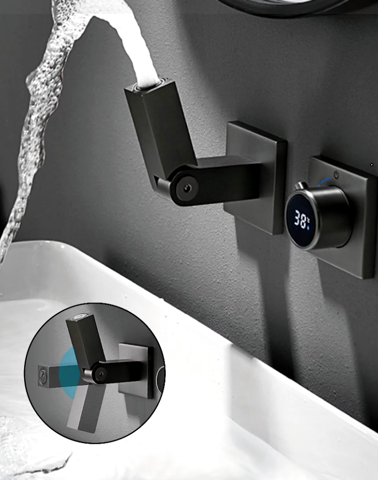 Upgrade your bathroom experience with this sleek, modern faucet featuring a digital temperature regulator. With precise control and a clear display, it ensures optimal water temperature at every use, combining style with advanced functionality. Its minimalist design complements any contemporary space, making it an ideal addition for those who value elegance and convenience.