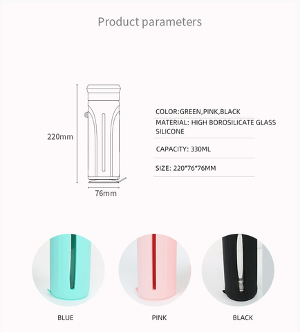 - The bottle has a silicone sleeve, which provides an extra layer of protection to the glass and prevents it from breaking.