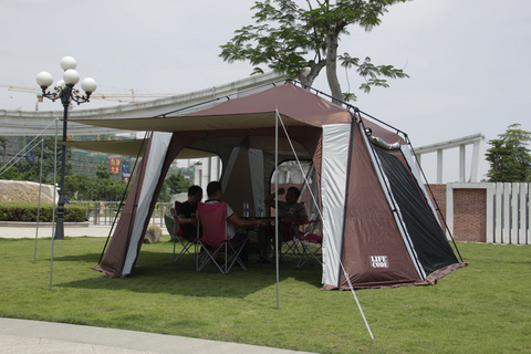 The tent offers great coverage for entertaining or just relaxing under the stars. It sets up easily and has a UV coating that protects you and your family from harmful rays. This tent is perfect for family camping, backyard barbecues, weddings, and festivals.