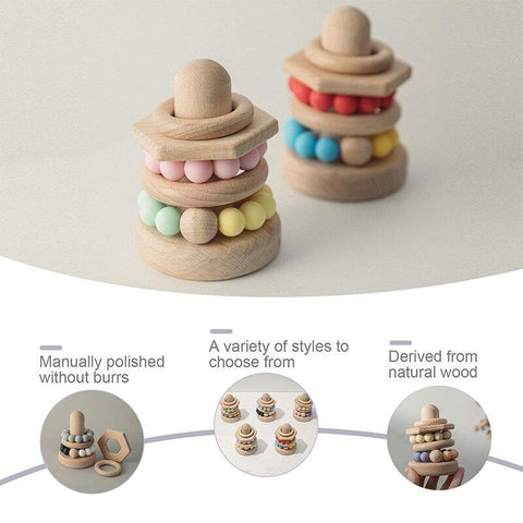 Stacking Ring Toys: The fascinating process of folding the rings relaxes the baby, and it helps relieve stress and get rid of negative emotions. The wooden stacking toys will acquaint your baby with such concepts as shape, teach how to distribute objects according to certain criteria, and help develop coordination and logical thinking.