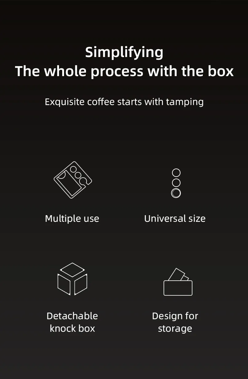 This vintage-style storage box doubles as a tamper station, offering baristas a touch of classic charm coupled with functionality. It’s the perfect countertop companion, providing a dedicated space for your coffee tamper and accessories. With its robust build and elegant design, it seamlessly blends into the art of espresso-making, keeping your tools neatly organized and within easy reach.