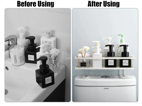 The Bathroom Punch-Free Hanging Storage Rack is a simple yet effective solution for your bathroom storage needs. Made of high-quality iron material, this rack is built to last. The drain design allows you to place cosmetics, care products, etc., on the stand without them getting soiled by other items on the shelf.