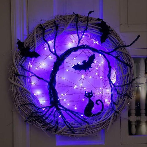 1 x Black Bat Cat Halloween Door Wreath Led Light