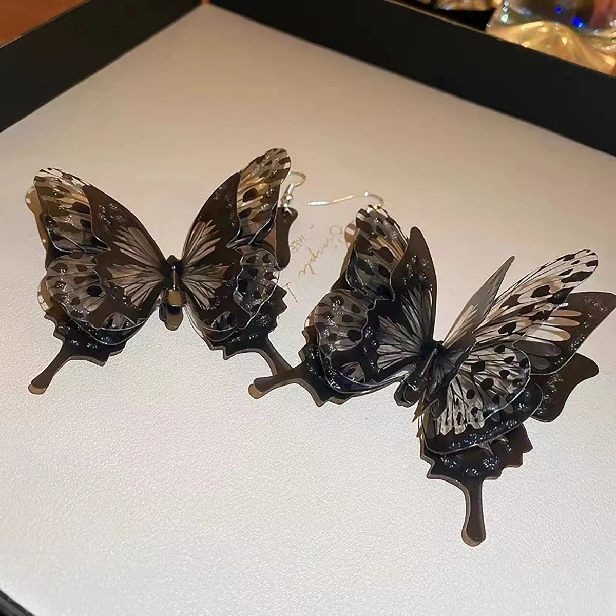 Delicate yet bold, these statement earrings feature intricately designed black butterflies with a striking hollow effect. The lightweight material ensures comfort while adding an ethereal touch to your look. Perfect for adding drama to casual outfits or enhancing an elegant evening style.