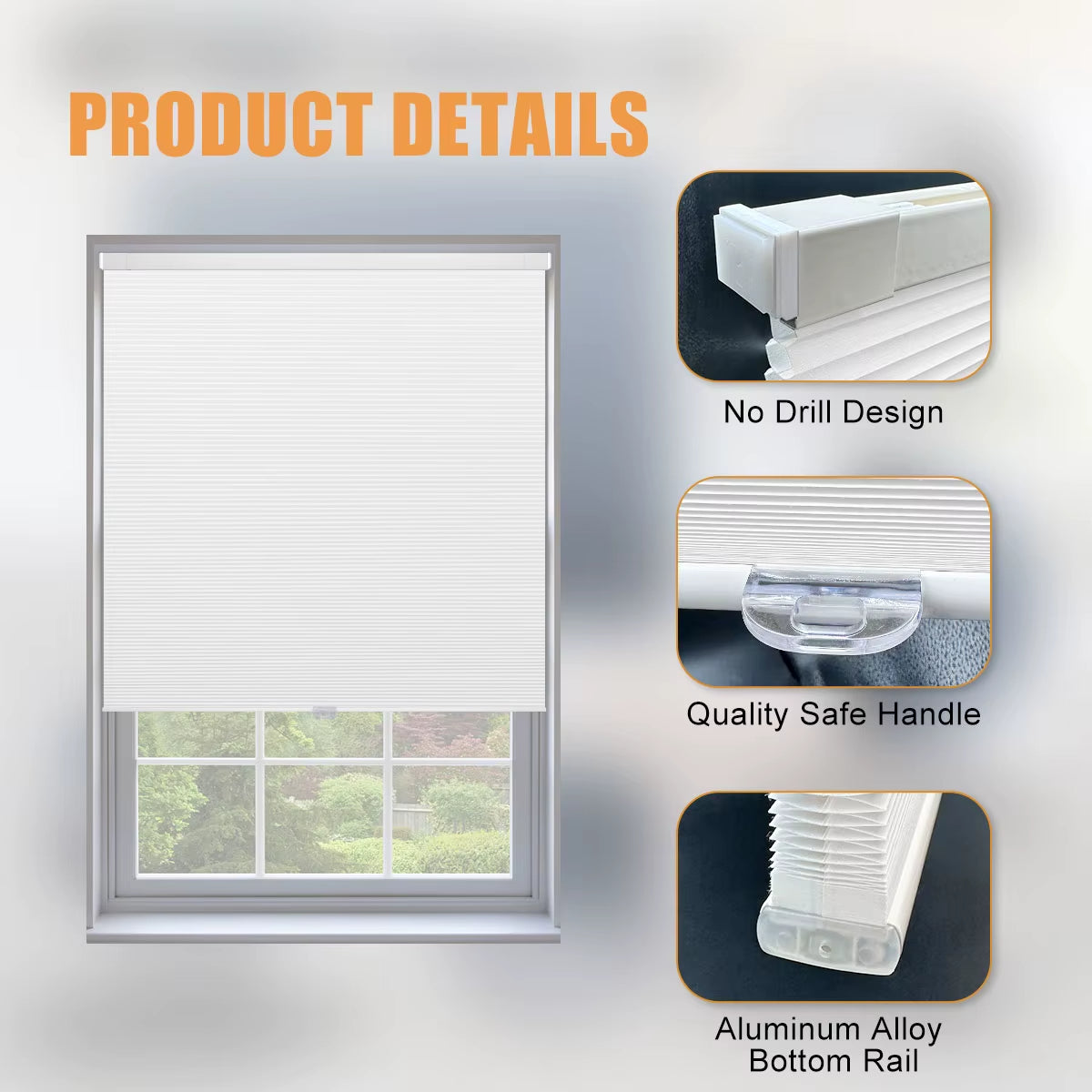 Transform your space into a private and serene sanctuary with Blackout No-Drill Cordless Honeycomb Blinds. These innovative blinds effectively block out all light, offering you complete darkness for restful sleep or enhanced privacy. The no-drill installation provides hassle-free setup, ensuring you can enjoy your new blinds without the need to damage walls or window frames.?