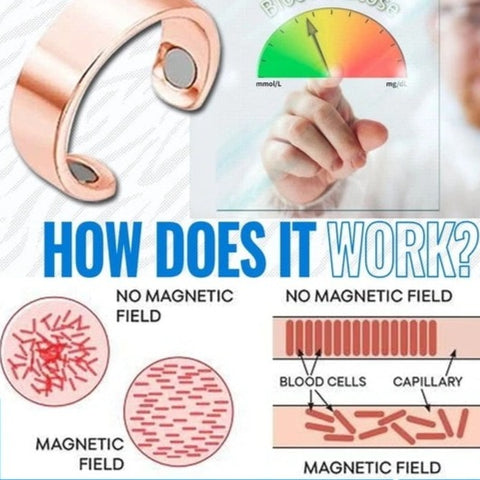 Static Magnets help with insulin production. Energizes the body and stimulates nutrient-rich blood flow to invigorate your metabolism. Easy to use and non-invasive. Simply put on the ring, which does all the work for you.