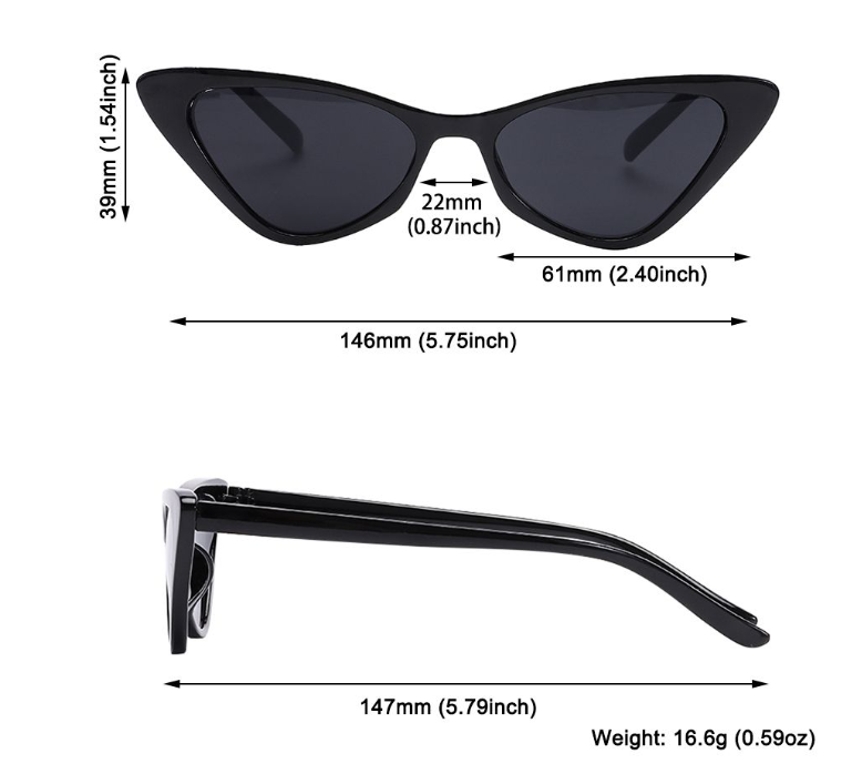 Turn heads wherever you go with these cat-eye sunglasses. Not only do they protect your eyes from harmful UV rays, but they also add a dash of glamour to any outfit. With their timeless cat-eye design, these sunglasses are the perfect blend of fashion and function.  Â