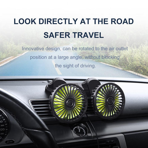 - Featuring two heads design, 360 degrees rotating function, three wind speed modes, and silent noise, the suction cup design vehicle fan with adhesive tape can be used conveniently and fixed on a flat surface stably.