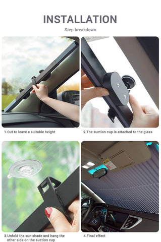 - Custom designed for the car, the car windshield sunshade can be quickly installed on the windshield.