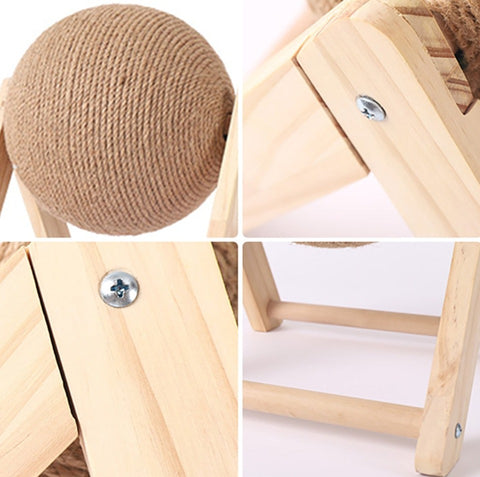 - Cat Interactive Toy Scratcher Ball is easy to install simple to operate. It is made of solid wood and hemp rope material, recyclable, environmentally protected, wear-resistant.