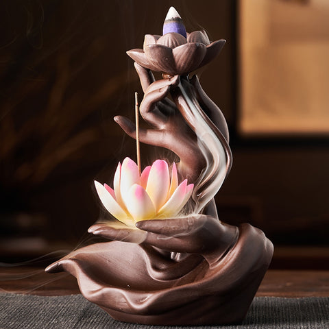 The waterfall incense burner can be used both with backflow incense cones and incense sticks. Lit incense sticks or incense cones on an incense holder create fresh air, calm mood, alleviate anxiety, etc. incense cones offer aromatherapy that contributes to reduced pain and improved health, meditation and aid-sleeping effect. Forget about troubles.