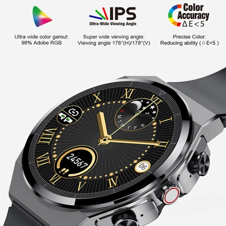 Experience the perfect fusion of timeless elegance and modern technology with the Classical Style Leather Built-in Bluetooth Health Monitoring Smart Watch. This sophisticated wearable device boasts a classic leather strap, an attractive watch face, and a comprehensive suite of advanced features designed to enhance your daily life.