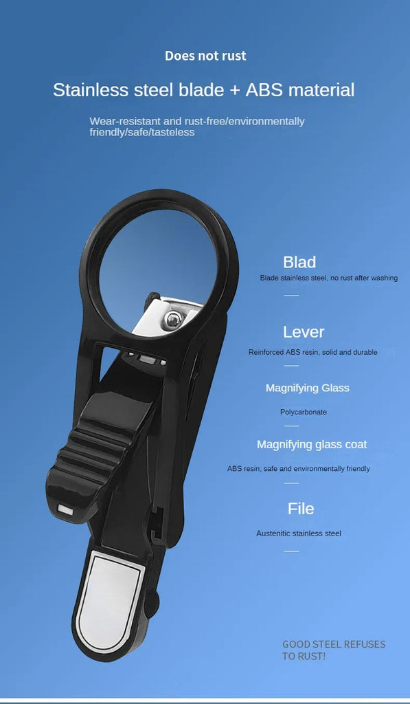 This?is a precision grooming tool designed to provide a clear and accurate nail trimming experience. This innovative clipper features a built-in magnifying glass that enhances visibility, making it easier to trim your nails with precision and confidence.