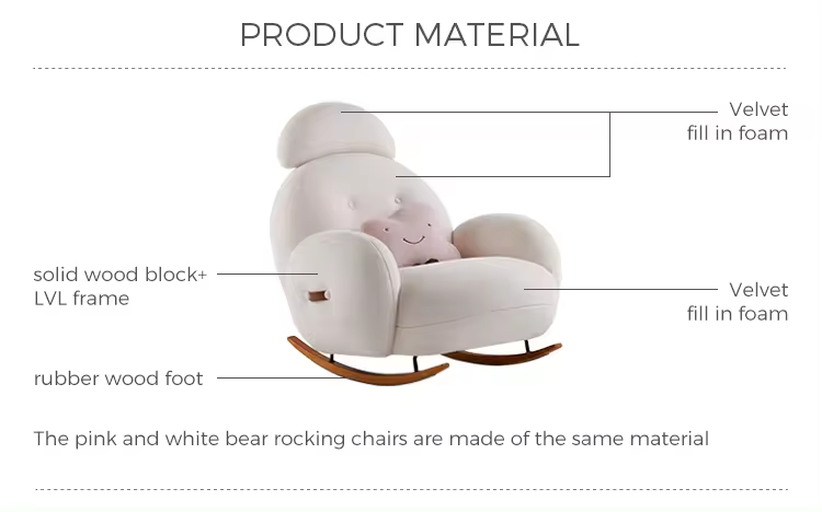 This Cloud Comfort Rocking Chair exemplifies modern minimalist design, offering a blend of style and soothing comfort. Perfect for any contemporary living space, nursery, or reading nook, this chair features a sleek, streamlined appearance that complements its functionality. The gentle rocking motion provides a relaxing experience, ideal for unwinding after a long day or soothing a baby to sleep.