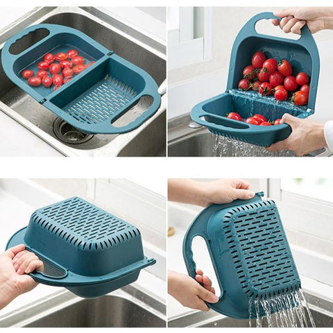 - This has a snap-on design, stable two-sided balance, folding joints, easy to clean fruits and vegetables. After closing, shake it left and right to clean and drain.