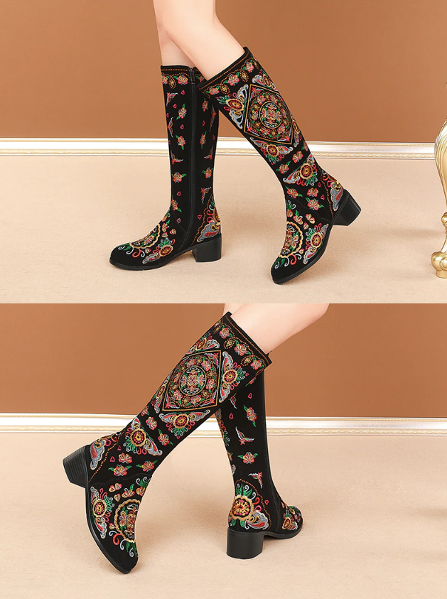These Colorful Low Heel High Sleeve Winter Boots are the perfect blend of style and function. With a cozy high-sleeve design, these boots will keep your feet warm and protected from the elements. The low heel adds a touch of elegance, while the colorful design adds a pop of personality to your outfit. Made from durable materials, these boots are built to last through even the toughest winter conditions.