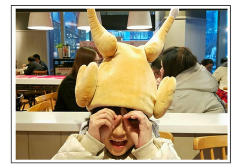 How to use: Install 3 AA batteries and press the switch button, the hat will sing and the chicken legs will dance. (Batteries not included)
