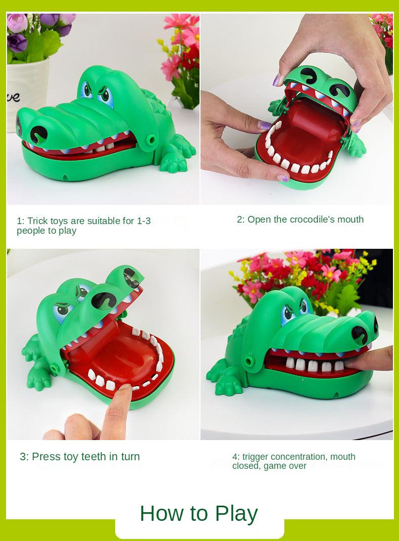 The Crocodile Bite Kids Game Toy is a game of chance and a fun toy that you can play with your friends. It has been proven the most popular toy for kids in America and worldwide! The Crocodile Bite Kids is an interactive game of bite, which turns out to be a lot more fun than it sounds.