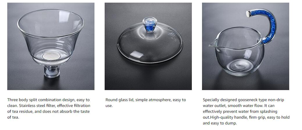 - Three-body split combination design, easy to clean. Stainless steel filter, effective filtration of tea residue, and does not absorb the taste of tea.
