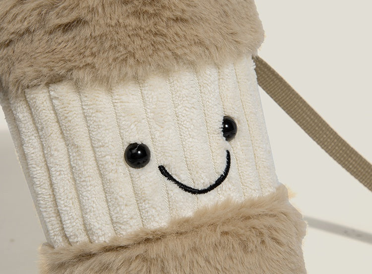 This coffee mug holder plush bag is an adorable and functional accessory designed to bring both style and convenience to your daily coffee routine. This plush bag features a cheerful, smiling face design that adds a touch of whimsy to your morning.??