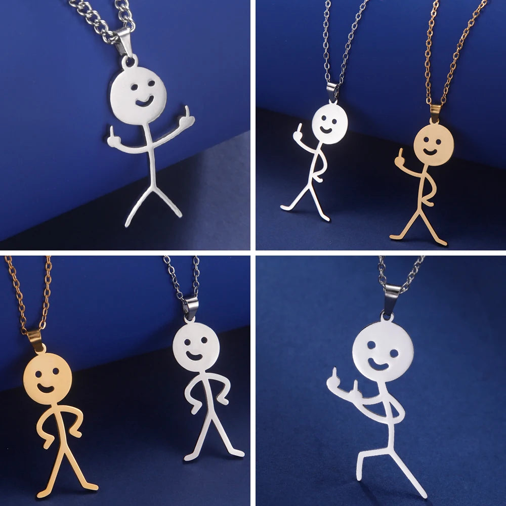 1x?Cute Punk Funny Middle Finger Stickman Necklace