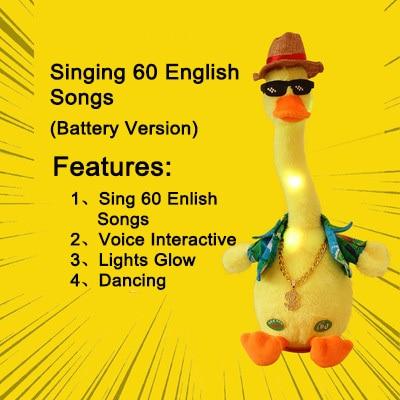 Upgrade functions: It has Mixed English 60 songs are upgraded, with the recording dialogue function (in conversation with the Duck, it can repeat your speech), with colored lights (light, even in the dark night), dance function, brand new updated function, which is more interesting and fun.
