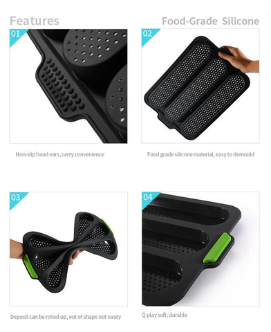 Create your own bread in the kitchen with these baking molds; it is so easy to bake bread at home. These molds are great for baking bread, cakes, desserts, and more! They are made of flexible silicone, which allows you to easily remove your baked goods from the mold. You can enjoy the DIY baguette with your family, the happiness and health of baking.