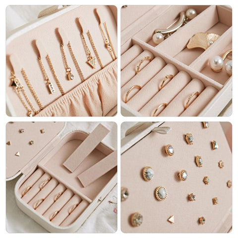 Portable Size: It is an easy-to-carry small jewelry box for family storage and perfect for travel.