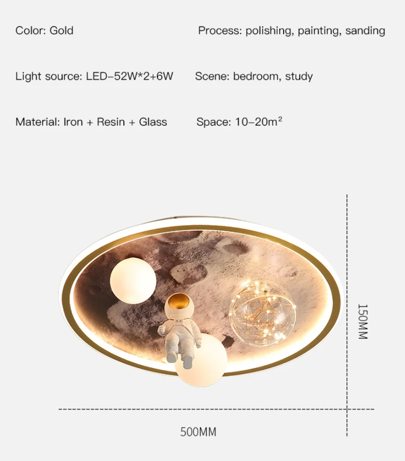 These LED ceiling lamps, featuring a dreamy astronaut and lunar light design, bring a touch of cosmic wonder to any room. The whimsical astronaut motif, combined with the soft lunar glow, creates a playful yet serene atmosphere. Ideal for a child’s room or for anyone who loves space-themed decor, these lamps not only illuminate your space but also add a creative and imaginative element to your home. Their LED technology ensures energy efficiency, making them both a charming and practical lighting choice.