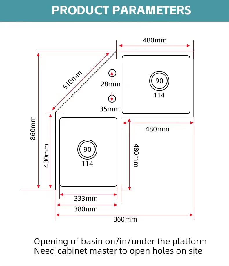 This stylish corner-mounted sink offers a smart solution for kitchens short on space. With two deep basins and a rotating faucet, it combines efficiency and elegance in one streamlined design.