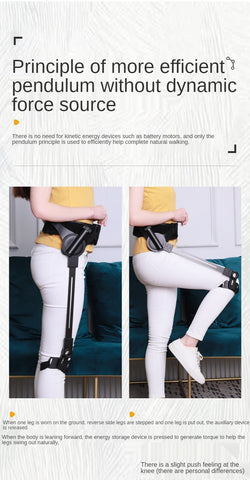 Bionic design in harmony with the human body: The walker uses a bionic design that looks like a human leg as a whole. When used, it is worn on the weak side of the body. It uses a rhythm that is in line with the human body to make up for the lack of muscle strength and uses natural gravity. Complete efficient and harmonious auxiliary exercises