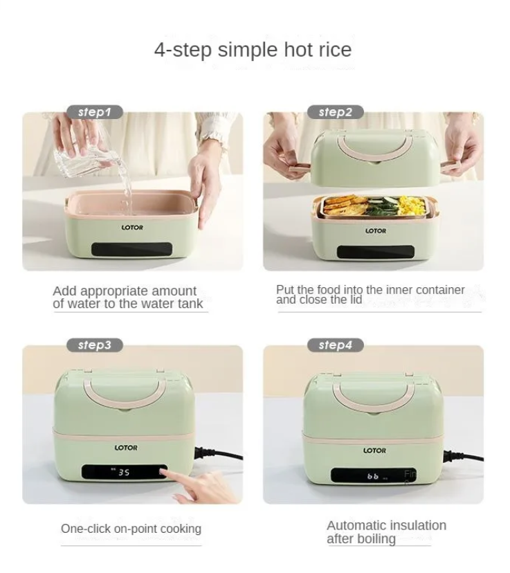 Enjoy the comfort of a warm, home-cooked meal no matter where your day takes you with the Electric Heating Portable Power Lunch Box. This sleek and compact device is designed to make your lunch breaks better, providing a simple way to heat your food safely and efficiently.