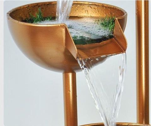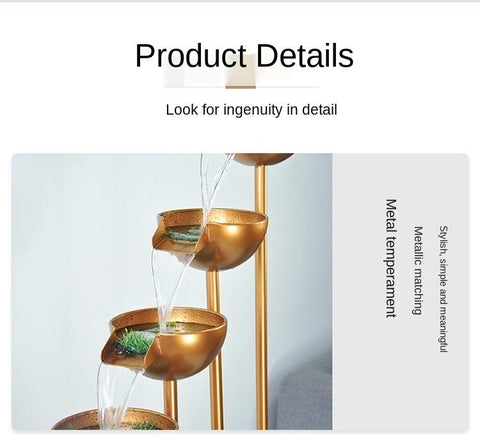 Water trickles down through cups to mimic the sounds of a real waterfall, adding peaceful ambiance to your home or yard