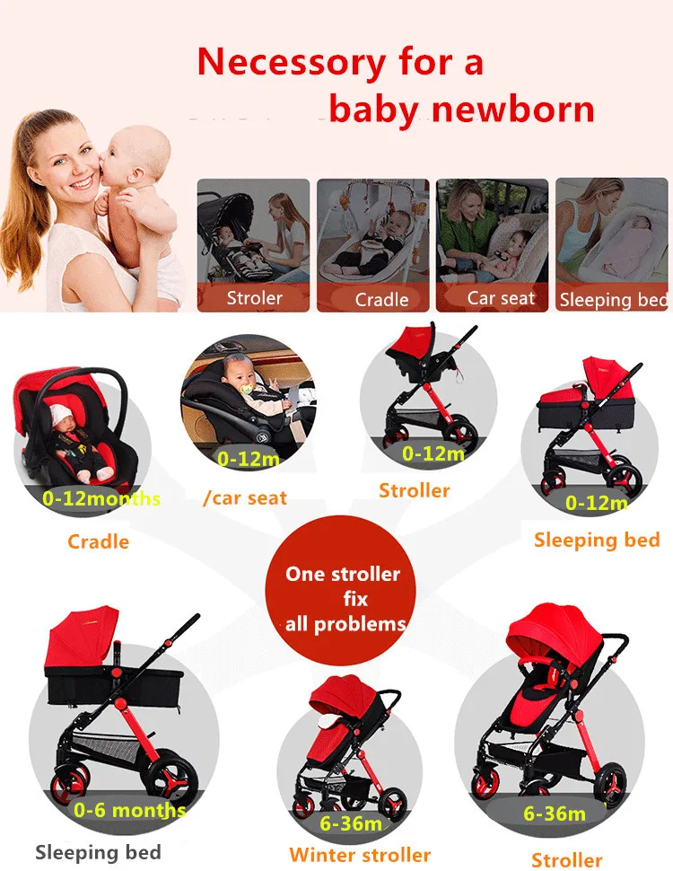 Luxury 3 in 1 Portable Higher Land-scape Carriage Foldable Baby Stroller