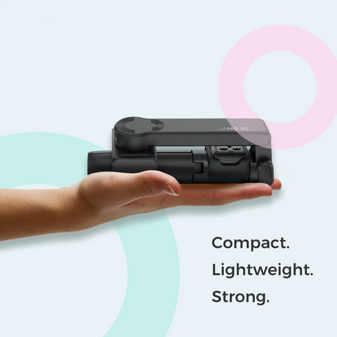 CompactLightweight.Strong: The ultra-light weighs just 250g (approx 55lb). Its super-compact form factor can be held in just one hand when folded and supports large-screen mobile phones weighing up to 280g.