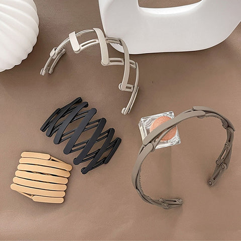 This foldable/collapsible headband is made with eco-friendly material. It is great for all ages. It can be folded to fit in your pocket/bag. Korean foldable headband, which is different from other foldable headbands. It is more convenient to use and can be worn with shoes. The material is resin, the color is darker, and it is more temperamental. Please use it to the maximum, otherwise, the hair will be caught in the joint.