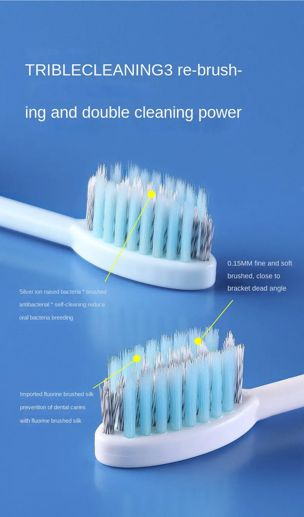 *3. The brush head is made of fine and soft bristles, which will not harm the gums and mouth when used.