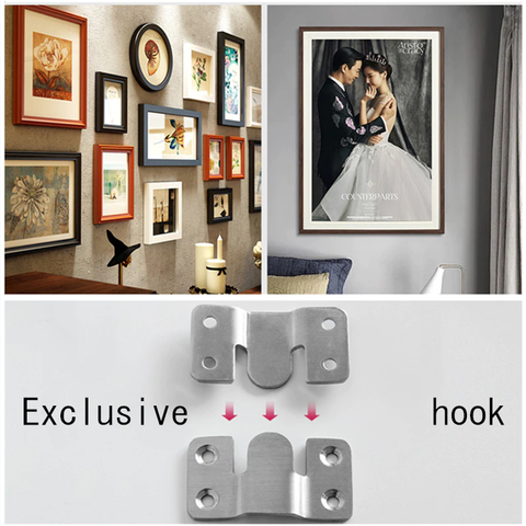 This hook or buckle is combined of two E-shaped parts. For example, if you want to use it on a wooden photo frame. Then install one part on the back of the photo frame and install the other part on the wall. (Installing screws are included here)